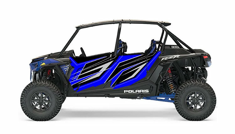 Looking for graphics to complete the look on your 2019 RZR and color ways for your Pro Armor RZR Turbo S4 door Stealth Doors. Look no further to a color and theme matched Polaris Blue graphics kit. Consists of a Blue//Black/Silver color scheme this graphic kit will match the colors on your Polaris Blue RZR Turbo S4. Made from Arlon brand vinyl and backing for a strong application and withstand elements and fade.