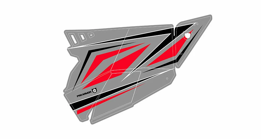 Looking for graphics to complete the look on your 2019 RZR and color ways for your Pro Armor RZR XP1K Turbo Stealth Doors. Look no further to a color and theme matched Ghost Grey Dynamix graphics kit. Consists of a Grey/Red/Black Blue color scheme this graphic kit will match the colors on your Ghost Grey Dynamix XP1K Turbo. Made from Arlon brand vinyl and backing for a strong application and withstand elements and fade.