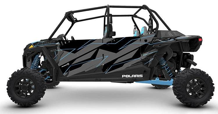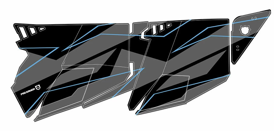 Looking for graphics to complete the look on your 2019 RZR and color ways for your Pro Armor RZR XP4 Turbo Stealth Doors. Look no further to a color and theme matched Titanium Metallic graphics kit. Consists of a Titanium/Black/Sky Blue color scheme this graphic kit will match the colors on your Titanium Metallic XP4 Turbo. Made from Arlon brand vinyl and backing for a strong application and withstand elements and fade.
