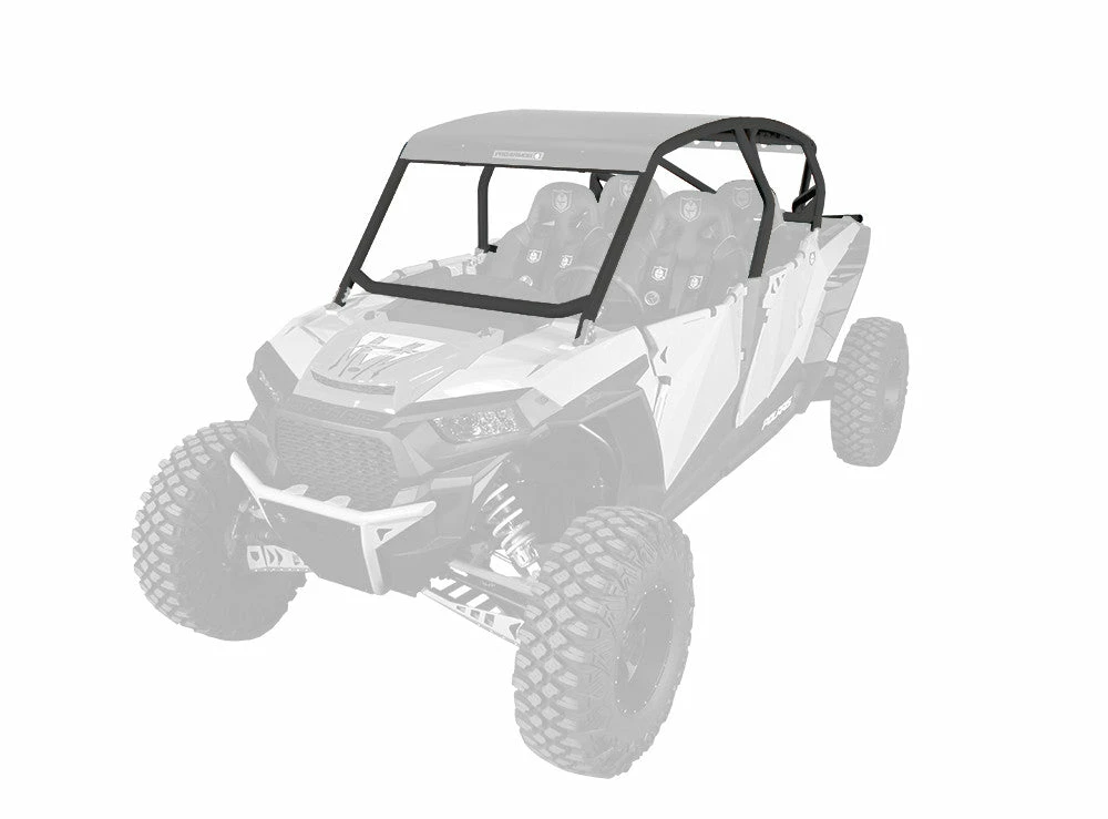 2014-2018 XP4 1000 Baja cage system available with no intrusion bar. This cage completely changes the lines of your 2014-2018 Polaris XP4 1000 four seater. This sleek cage is close to 5 inches lower than the stock Polaris cage and is made of 1.75 DOM steel tubing and TIG welded. With its popular Baja rear section it easily attaches to the rear section of the RZR using existing hardware. It is easy install with no drilling necessary and comes with all necessary hardware. We also offer a matching aluminum roof with or without a light pocket.