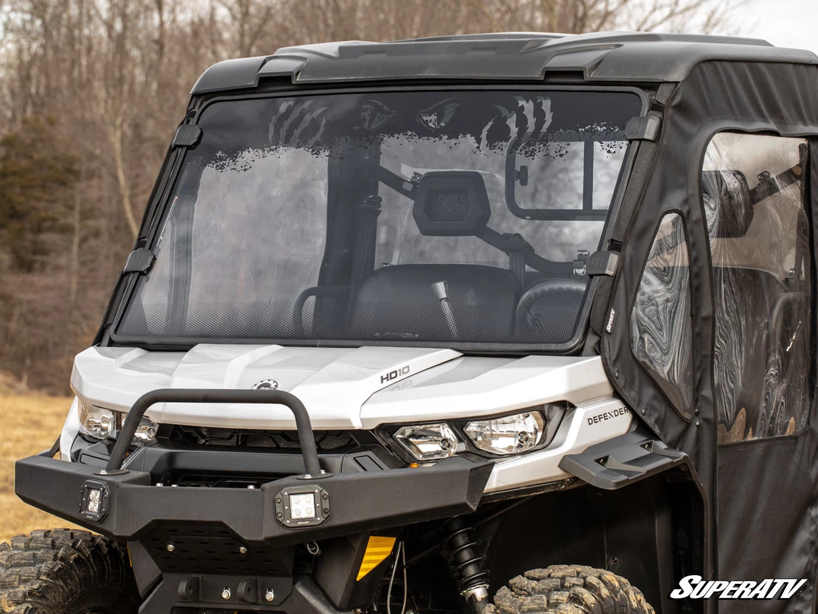 Whether you’re cruising down the trail or burying your Defender in a mud hole, you and your passenger need some protection. SuperATV’s Full Windshield is built for your Can-Am Defender and does more than keep the bugs out of your teeth—with a polycarbonate construction, it’ll stop rocks, mud, branches, rain, and everything else the outdoors can throw at you. And with the option to add a printed windshield design, you can make this awesome windshield match your own style.