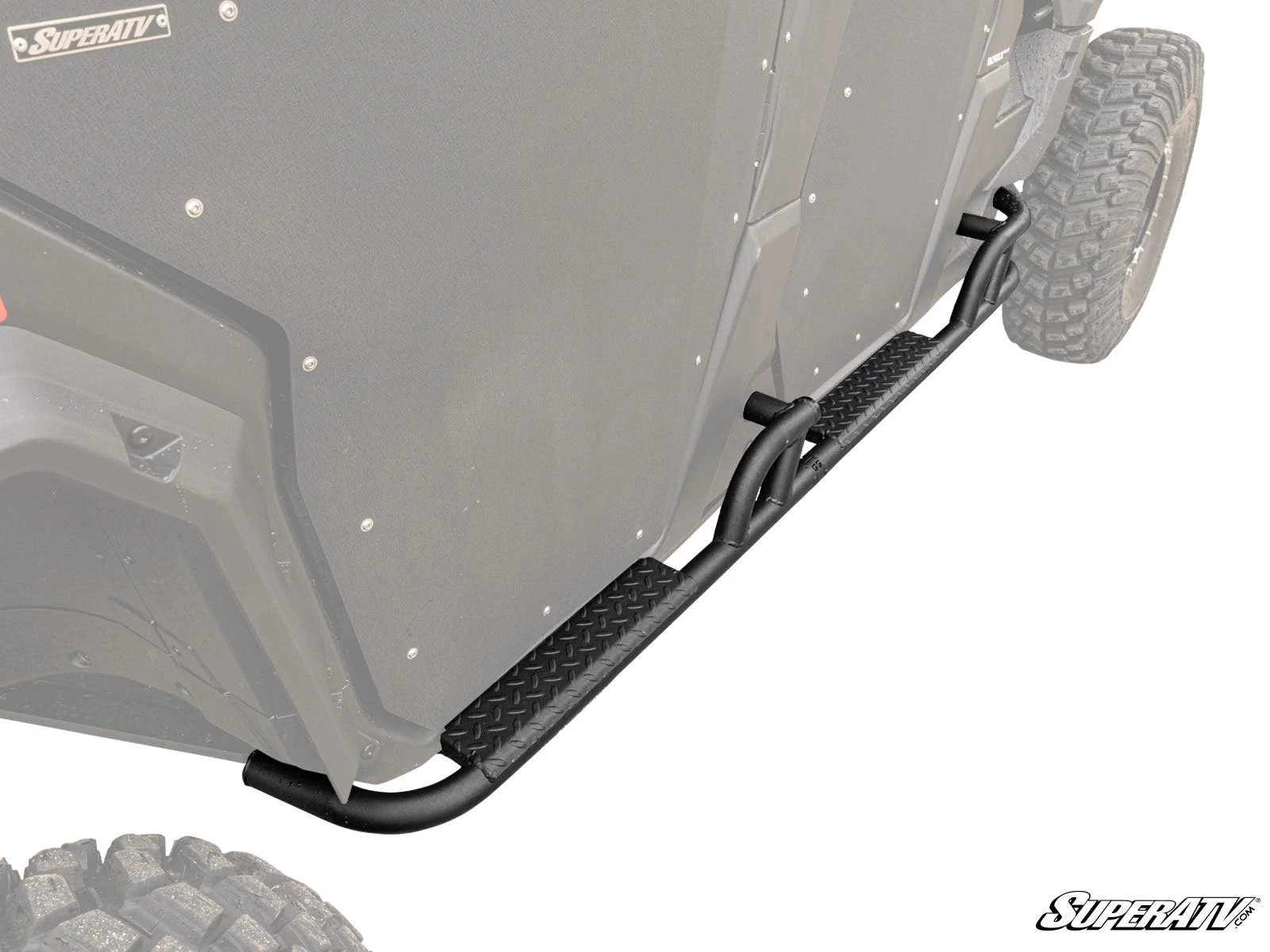 Your Defender rolls onto the trails ready for a good time. You don’t mind the dirt and mud because they can easily be cleaned off, but scratches and dents? Not so much. Riding with these Can-Am Defender Max Heavy-Duty Nerf Bars from SuperATV takes care of that. They protect your sides and plastic from dents and scuffs. So put pedal to the medal and don’t worry about knocking into stumps and rocks. Your machine will be damage-free, and it’ll look better than ever with these nerf bars.