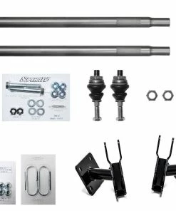 This kit comes complete with high-strength boxed A-arms, heavy-duty steel trailing arms, and billet aluminum hex radius arms.