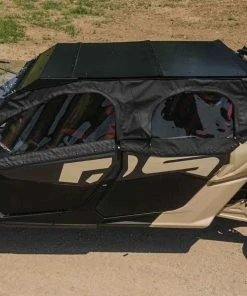 This smooth, low-profile Can-Am X3 MAX Aluminum Roof will not only keep your cab cool, but it looks cool too. It’s sleek and smoothâperfect for adding your own touch and personalizing it with decals. It also has a spoiler for added design and smooth airflow. And we replace the stock H-brace at the top of your roll cage to make it flatter. Youâll be hitting the trails in style, and everyoneâs going to ask you where you got yours.