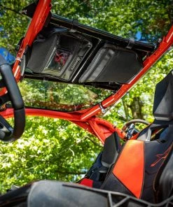 It attaches in eight places to keep it from coming loose on those rough trails. The bag has two compartments measuring 12” x 14” and 11” x 14”. It is large enough to keep a change of clothes and anything else you might need. The Overhead bag is constructed of a thick durable PVS coated water resistant material and it has a dedicated clear window so you can see your phone’s screen without getting it wet!.