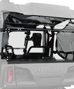 It happens to the best of us. You gas it a little too hard through the puddle and the next thing you feel is warm mud sliding down your neck. To avoid that, you need a SuperATV Rear Windshield on your Honda Pioneer 700-4. It’s tough, practical, and offers superior protection from the elements. The flip design ensures that it doesn’t interfere with your dump bed. And if you run a front windshield on its own, you know all about the suction and dust swirls that get inside the cab. A rear windshield puts a stop to that.