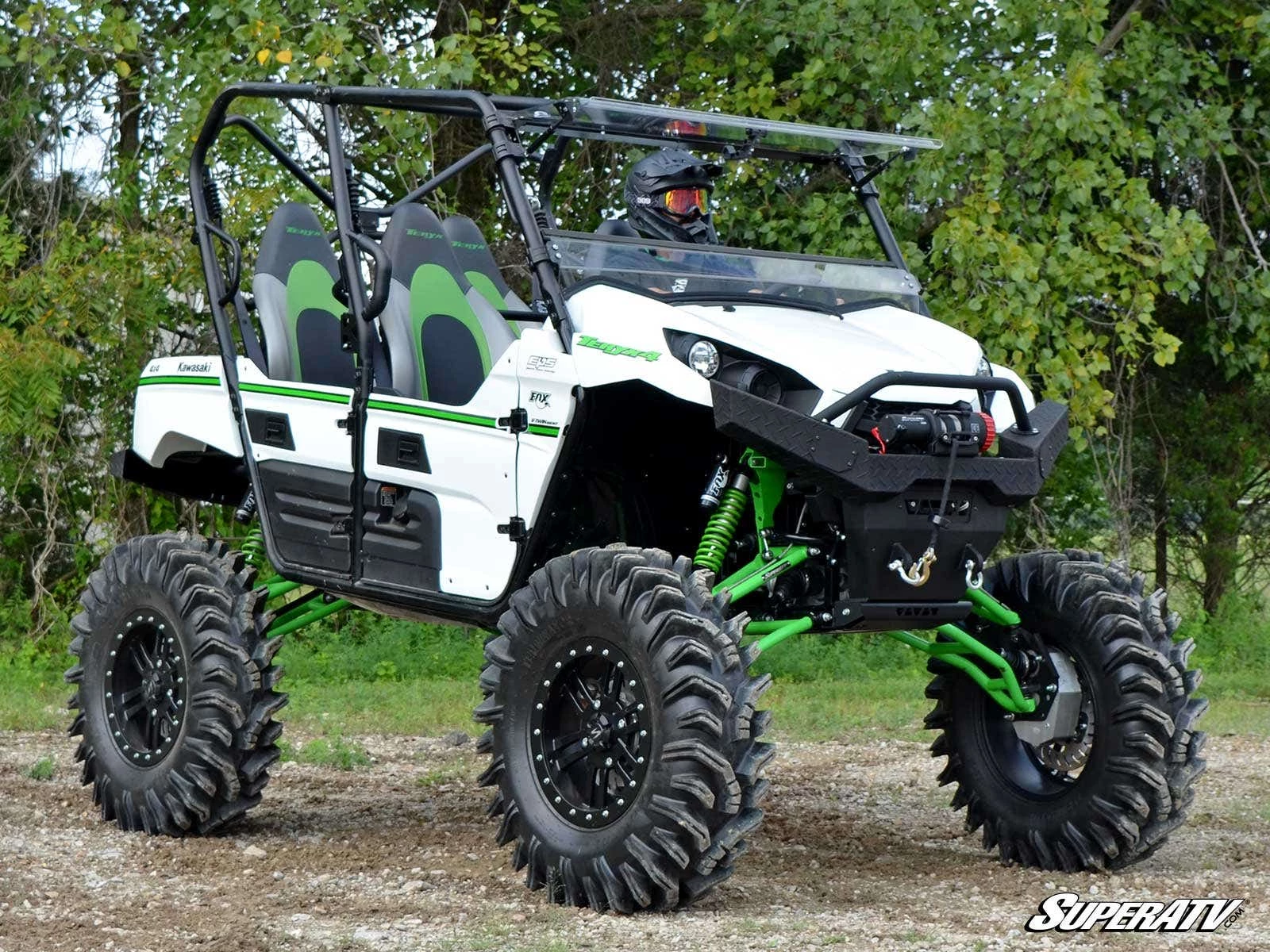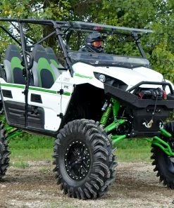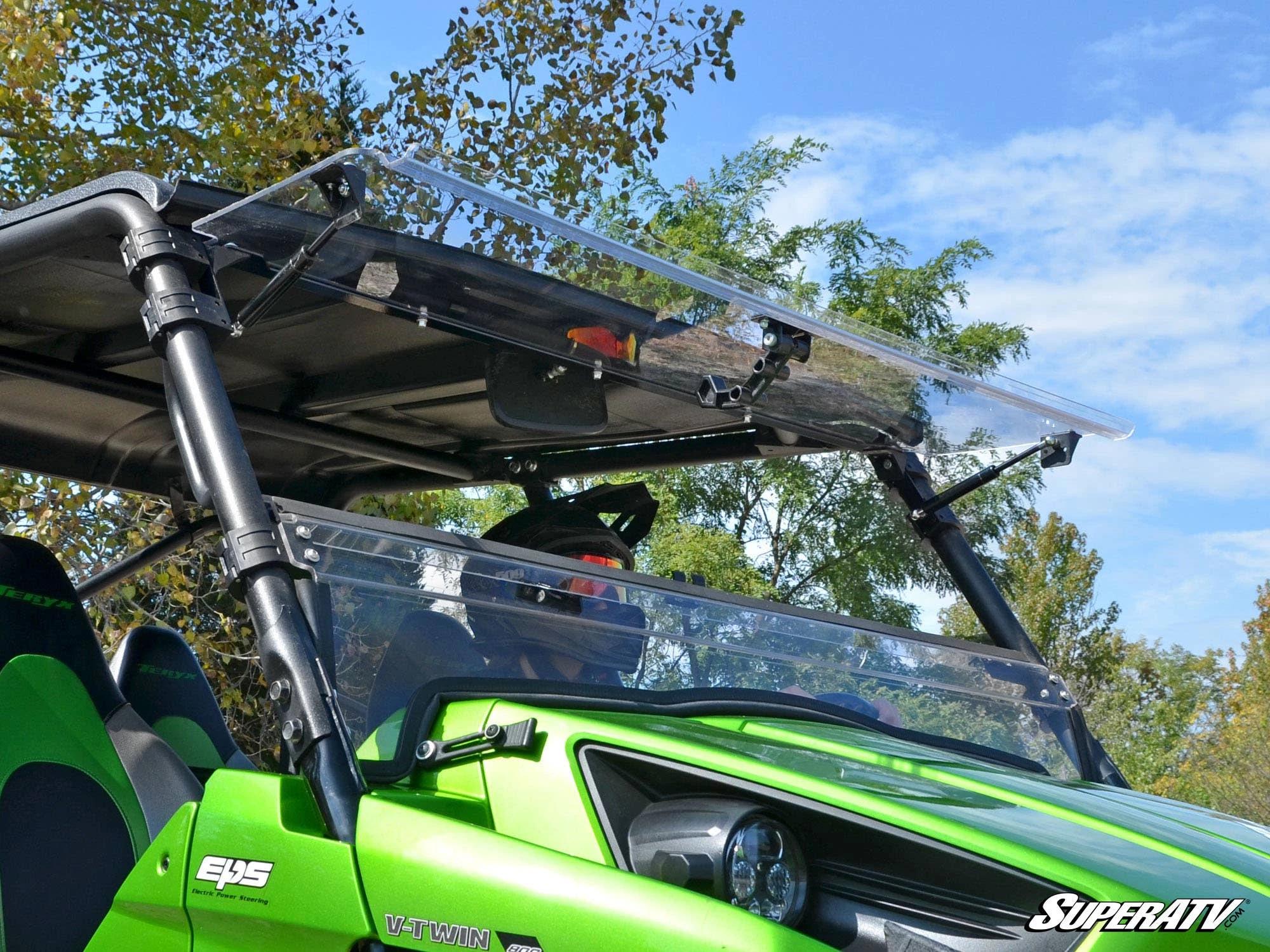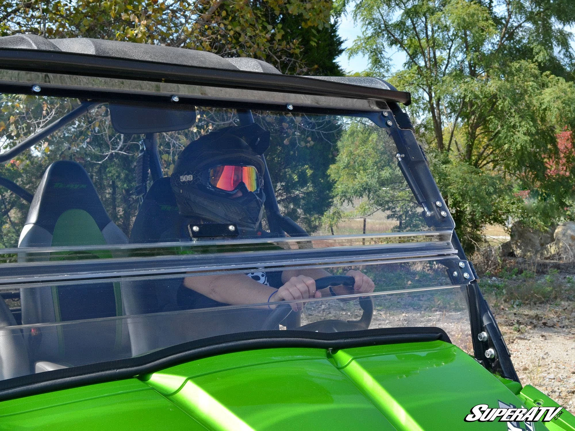 Don’t let Mother Nature dictate your riding schedule! Get SuperATV’s Scratch-Resistant Flip Windshield for your Kawasaki Teryx 750 or 800, and you’ll be riding in comfort all year long. Its flip-up design allows you to control how much air comes into your cab. Flip it up for full airflow, use it in the vented position when you want a nice breeze without letting in the elements, or keep it fully closed when you’re in need of full coverage. Rain, wind, and cold temperatures are no match for the versatility that a SuperATV flip windshield provides.