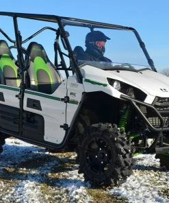 Whether you’re cruising down the trail or burying your UTV in a mud hole, you and your passenger need some protection. SuperATV’s Full Windshield for the Kawasaki Teryx does more than keep the bugs out of your teeth—with our polycarbonate construction, it’ll stop rocks, mud, branches, rain, and everything else without cracking or breaking. It’ll withstand more abuse than an OEM windshield ever could without the OEM price.