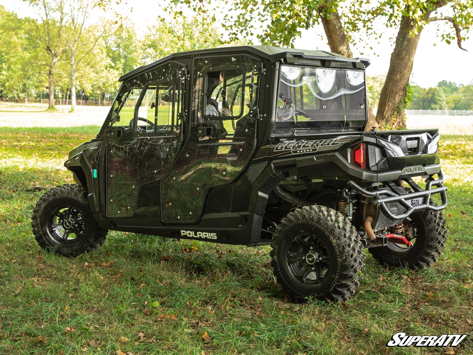 SuperATV’s Full Cab Enclosure Polycarbonate Doors for the Polaris General 1000 give you maximum protection from the elements. The built-in sliding window and the ability to easily lift it off its hinges gives you complete control over how much or how little air you get. They’re scratch-resistant for long-lasting durability and lightly-tinted to cut down on glare. That makes our door incredibly versatile and ideal for year-round use.