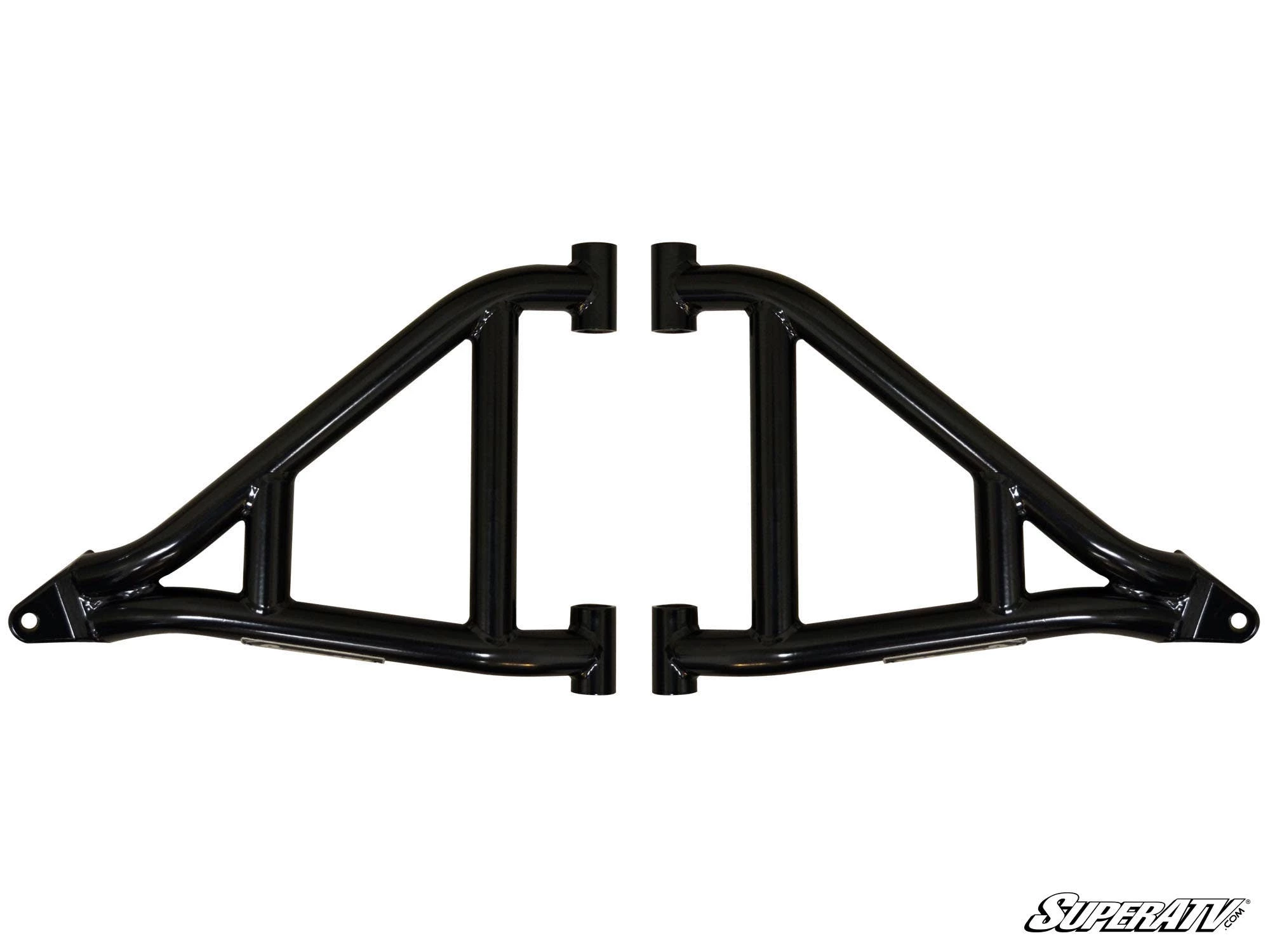 Do you want to put a little more clearance under your machine, but aren’t ready to commit to buying and installing a lift kit? Sounds like it’s time to look into some High Clearance A-Arms from SuperATV. The unique bend design gives your Polaris Ranger Midsize EV a height boost and enough room to run up to 26” tires. They’re larger and stronger than stock, so you can ride confidently knowing that your suspension is up to the task.
