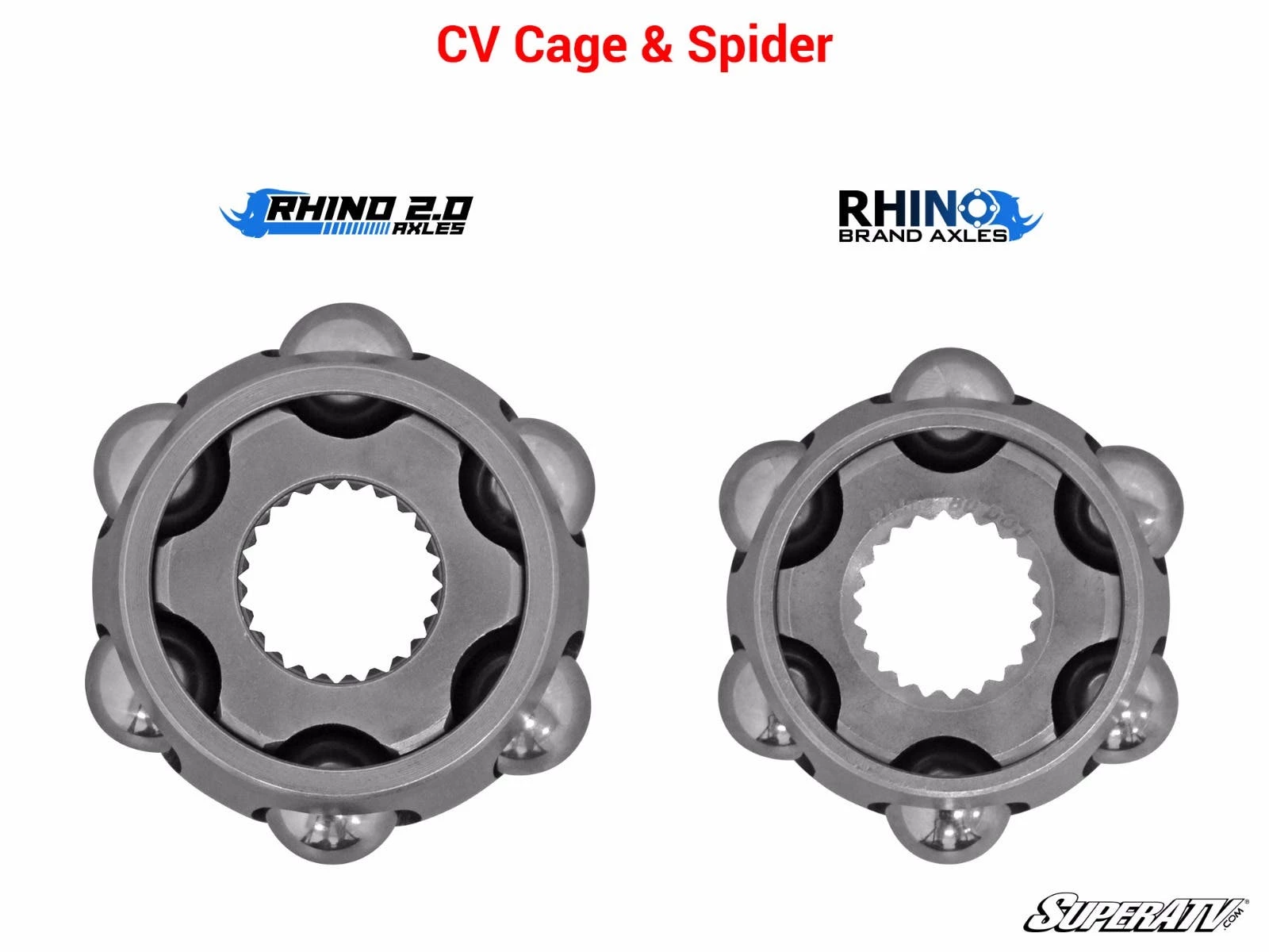 What makes Rhino 2.0 so strong? They’re SuperATV axles that use an all-chromoly construction—from tip to tip, this advanced alloy gives our axles more strength and durability. We couple that with bigger axle shafts and CV joints for nearly two times the strength of stock UTV axles and cool joints even at high articulation angles. We were careful not to go overboard though: these axles are built to break before your expensive differential does. And it’s all made with the performance-boosting Rhino 2.0 formula: