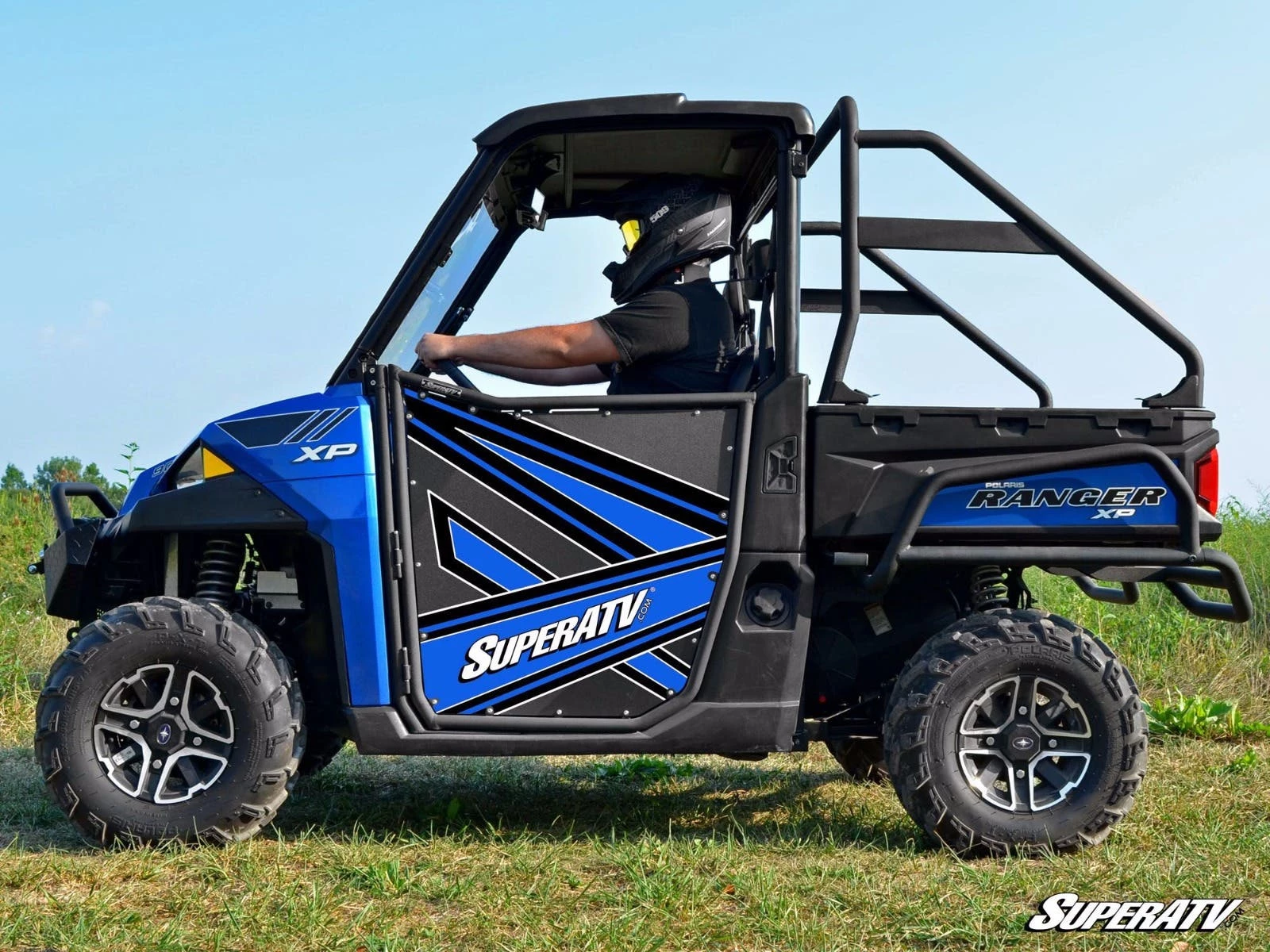If you’re looking for the perfect addition for your Polaris Ranger XP 900 Crew, look no further than SuperATV’s Aluminum Doors. They offer the best in quality, protection, and design without breaking the bank. These doors do what nets can’t by providing a solid barrier between your cab and the great outdoors. They help protect you from flying debris and keep all of that dirt, dust, and mud where it belongs—outside.