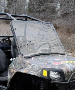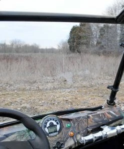 Our windshield is made with 1/4â hard-coated polycarbonate. Itâs 250 times stronger than glass and 25 times stronger than acrylicâwith that much strength, itâs virtually indestructible. When youâre flying down the trail hitting those kicked-up rocks and the odd tree branch, you can trust this windshield to hold together.