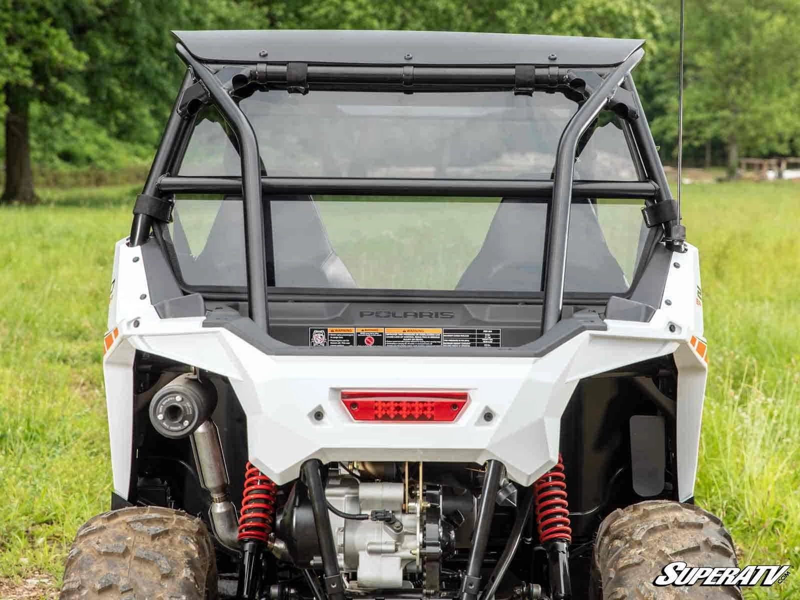 Make sure your child is protected and comfortable by adding SuperATV’s Rear Windshield to your Polaris RZR 200. Regardless if the sun is shining or it’s rained nonstop, a rear windshield helps keep the elements and your own rooster tail out of your cab. Installing a rear windshield to your machine also helps to eliminate the annoying suction you get when running a front windshield alone. It’s lightly tinted too, so you don’t have to worry about the sun’s beating glare.