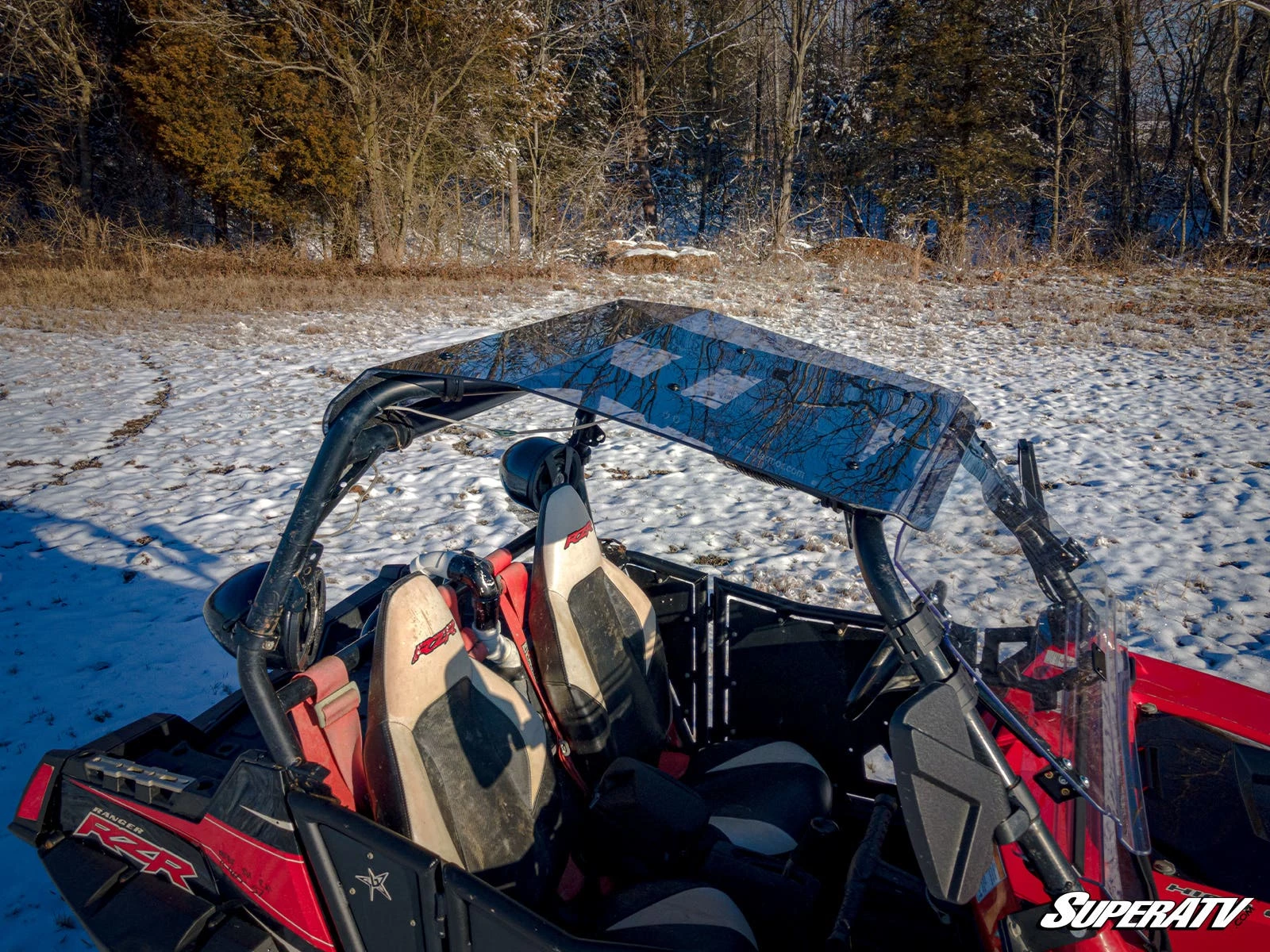 Dark tinted polycarbonate is the best option for a RZR roof because you don’t have to sacrifice visibility. It gives you all the coverage you need while still allowing you to see the sky above. Being able to enjoy the outdoors is a big part of why you ride, after all. A polycarbonate roof also allows you to see to the top of hills as you approach them, so you’re always prepared for what’s next.
