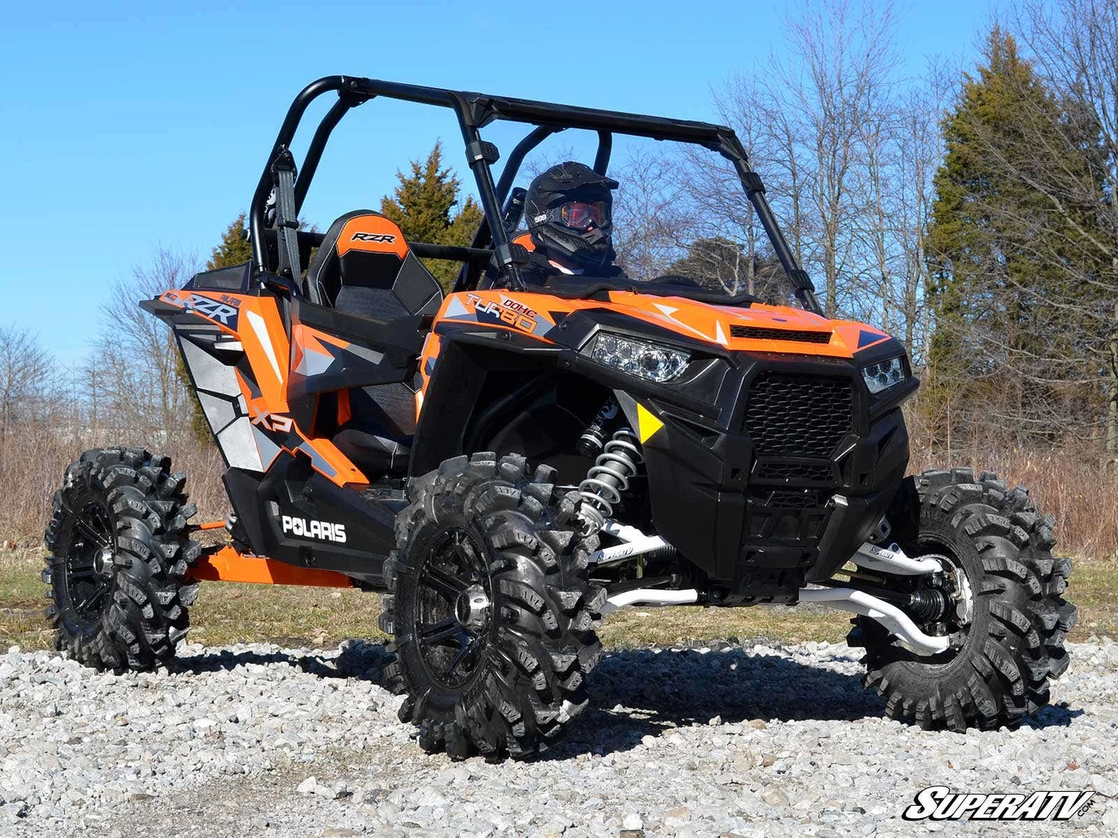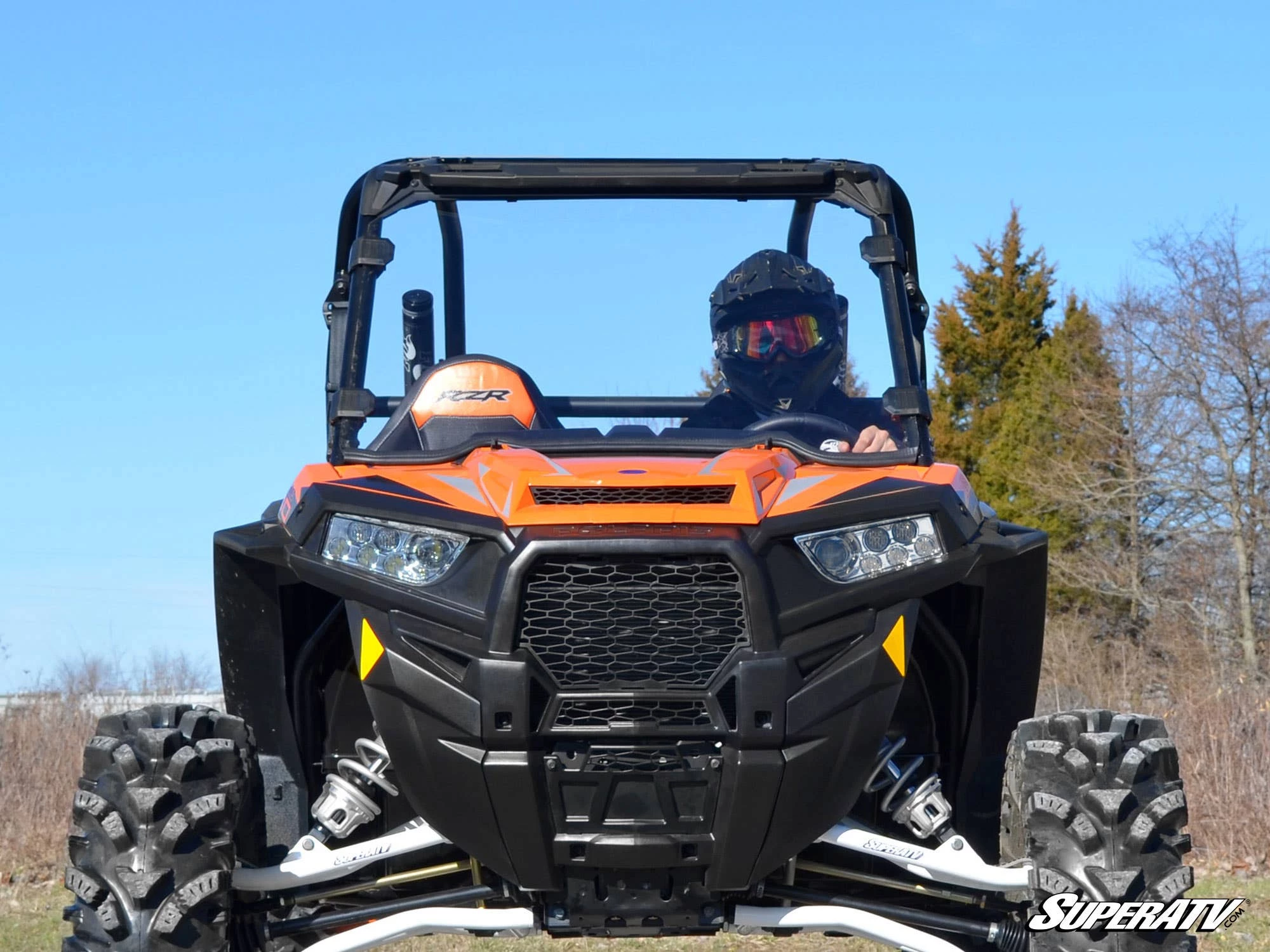 Get complete protection from kicked-up rocks and limbs with a Polaris RZR 900 Scratch-Resistant Full Windshield from SuperATV. Install it on your machine and ride through rain, wind, and snow, all while staying comfortable and keeping safe from trail debris. It beats the heck out of any OEM windshield you can get, and itโs a better way to ride.