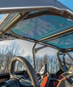 To enjoy the outdoors while inside your cab is the best of both worlds. And that’s what makes this RZR Pro R 4 tinted roof so great—you don’t feel closed in because you can see in front of you and above you at the same time. This makes off-roading safer because you can approach any hill with full visibility of what’s ahead while strapped into your seat.