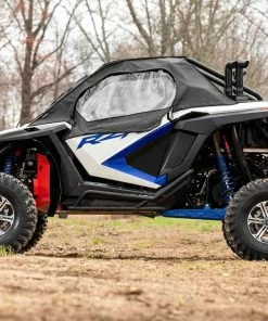 When you’re looking for a set of doors for your RZR, you’re going to want a set that will last. Thanks to our Pel-Tek technology and heavy-duty PVC-backed polyester material, these doors are puncture, abrasion, water, and mildew resistant. And we CNC cut them to your PRO XP’s measurements specifically to prevent stretching and sagging. Then we finish them with our premium stitching technique. Plus, you can easily install them to your machine using our heavy-duty Velcro and frame-mounted snaps. Taking your side-by-side on the road? Use our cinch straps while trailering for added security.