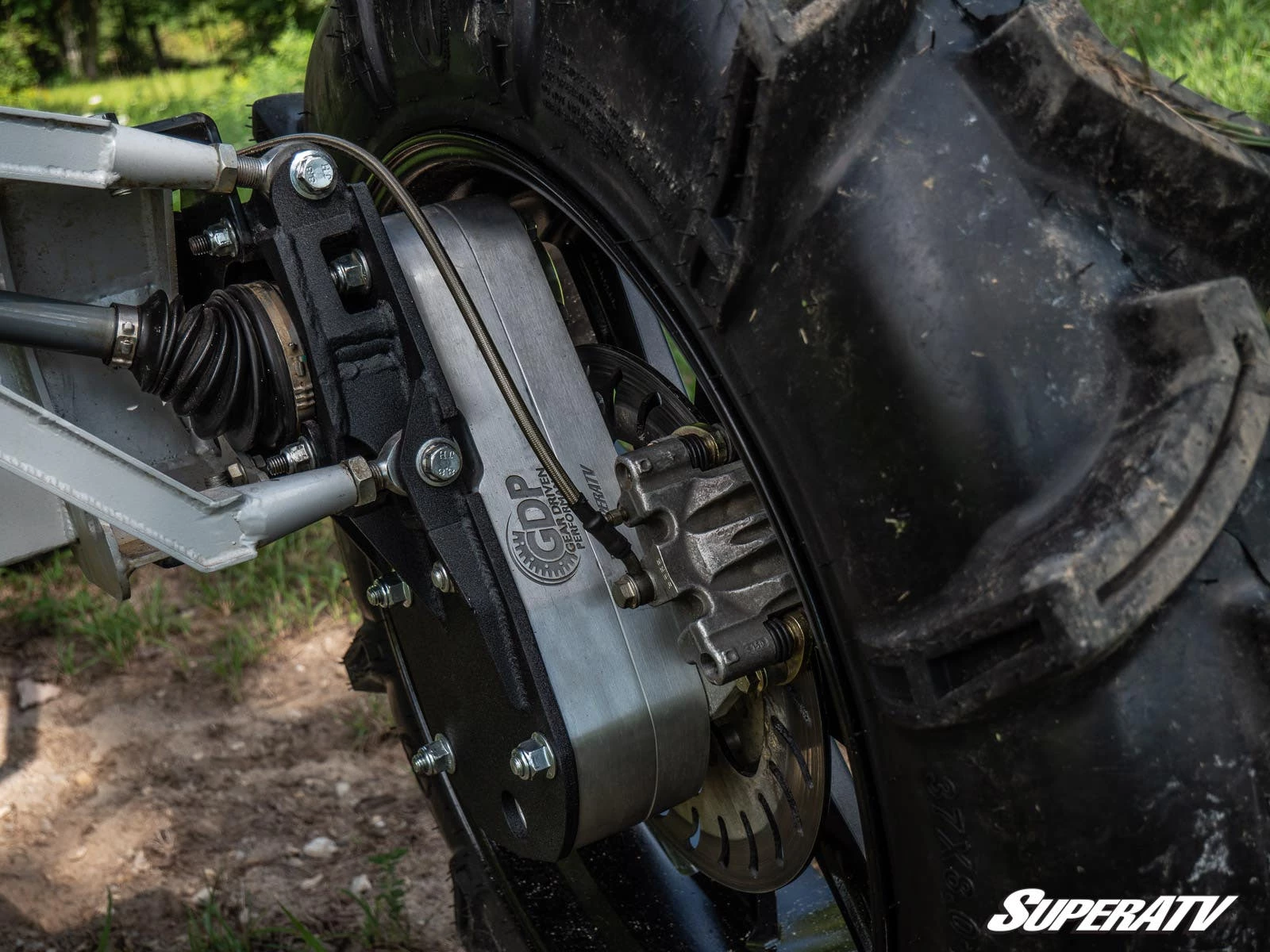 SuperATV’s GDP 8” Portal Gear Lift for the Polaris RZR RS1 is geared down so you can go big. It gives you a lift and a 45% gear reduction in one box. Get the clearance to run bigger tires and the torque you need to turn them. The lift and gear reduction are in the hub, so they maintain suspension geometry and reduce drivetrain stress. With huge clearance, huge torque, and optional billet aluminum housings, you can install monster tires to take your torqued-out single-seater anywhere.