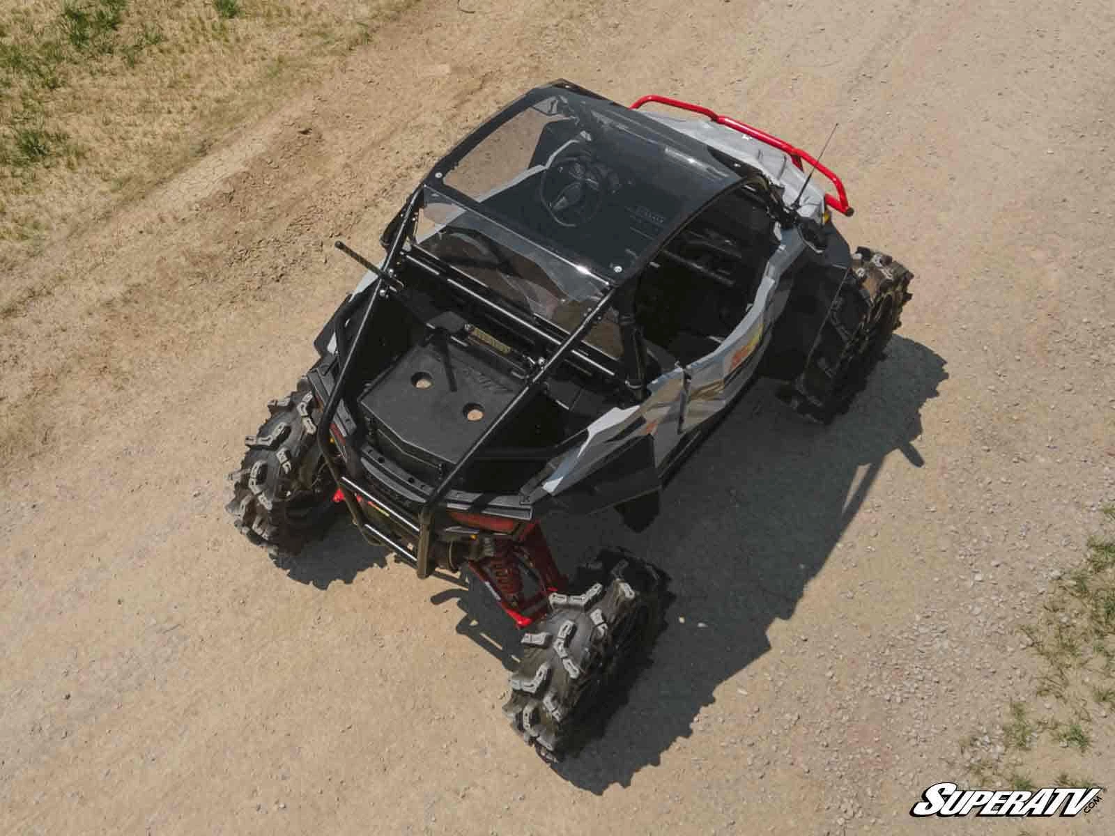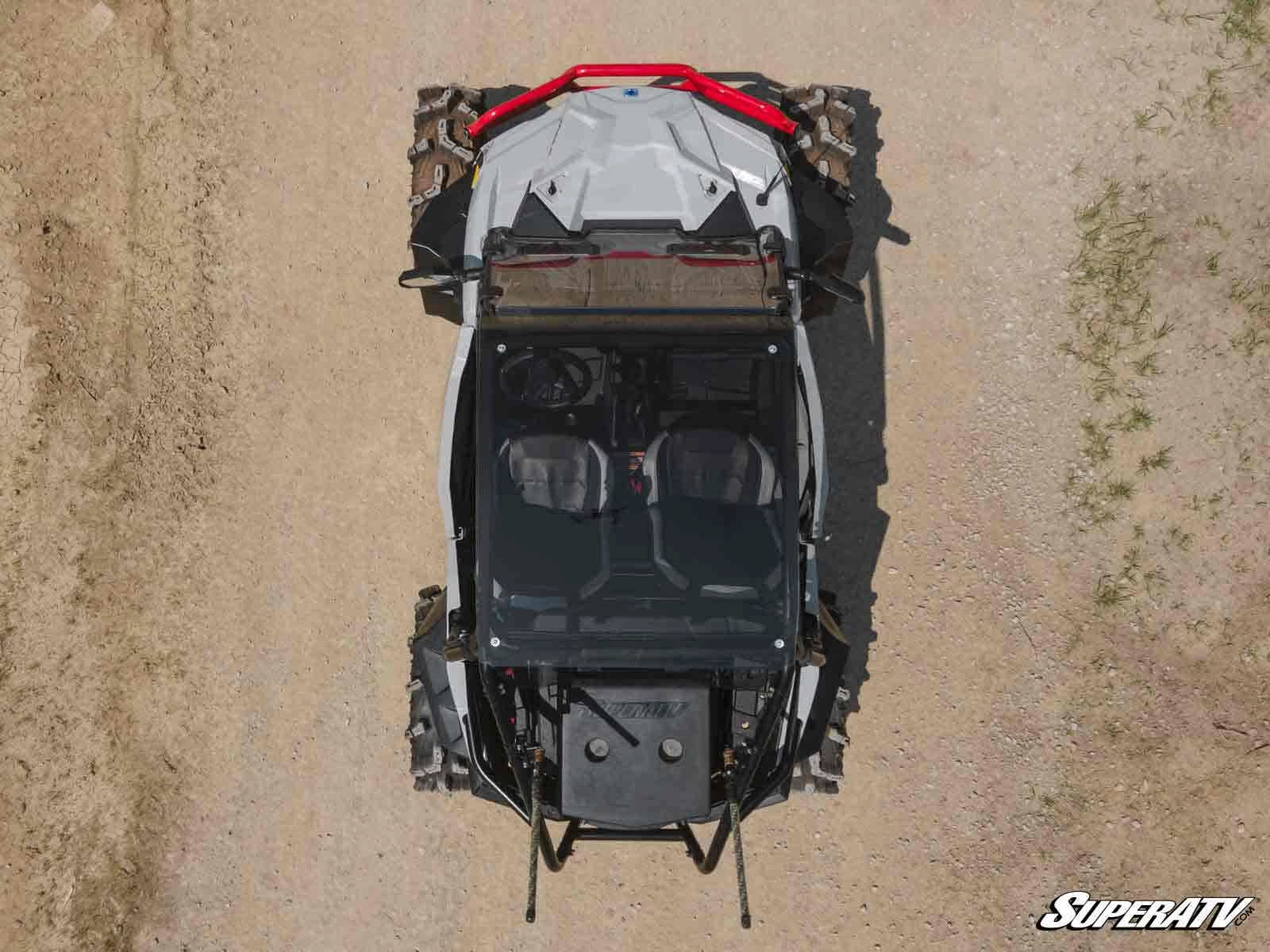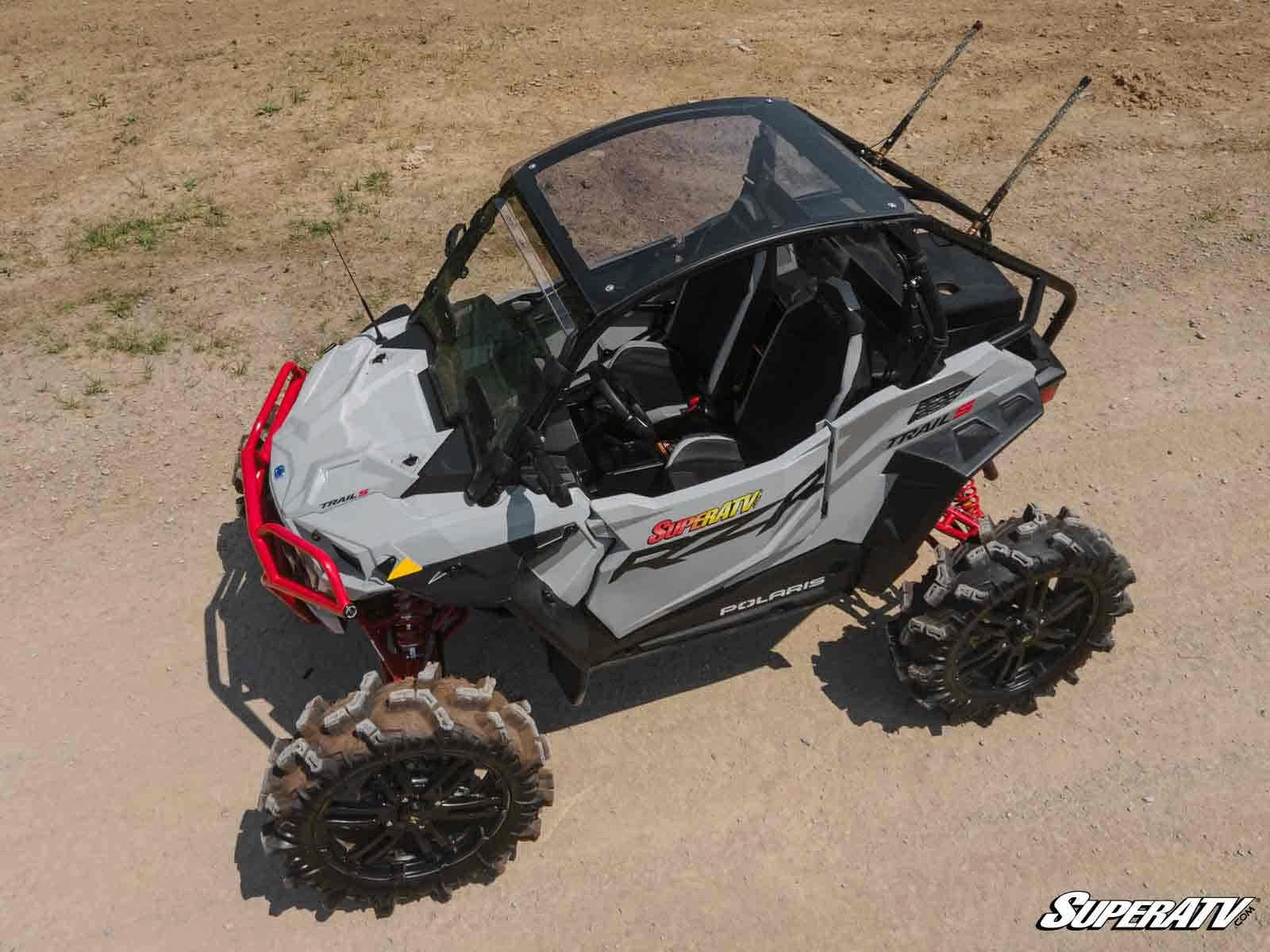 Riding your Polaris RZR Trail 900 is all about getting behind the wheel and enjoying the outdoors. The only problem is when stuff starts falling on your head—like the dirt spray from your rear wheels or sudden rain. With SuperATV’s Tinted Roof installed, you’ll be protected from everything trying to fall into your cab without losing the open-cab feel you love. It’s scratch resistant and tinted, so you don’t have to worry about the glare from the sun.