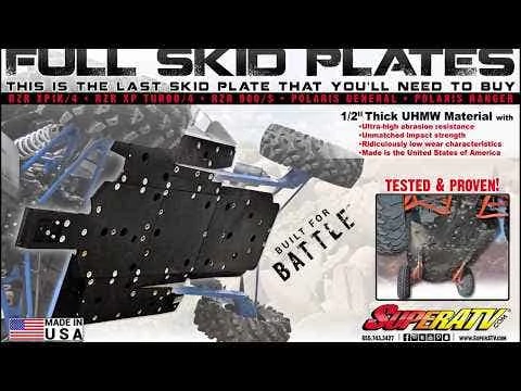 Install a SuperATV ARMW Skid Plate on your Polaris RZR XP 1000 and save your undercarriage! Our skid plates are made with proprietary 1/2” ARMW material and cut to fit your RZR perfectly. It’s strong enough to handle everything from branches flipping up to heavy bottom-outs, and it won’t bend or break. The perfect fit means nothing will sneak through.