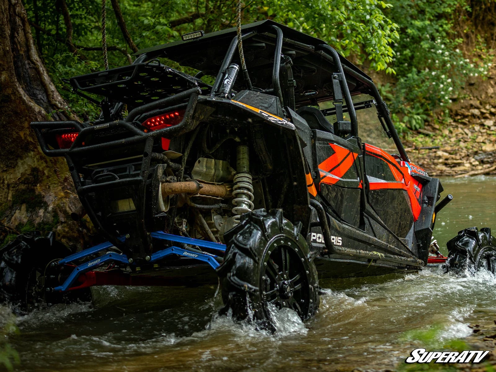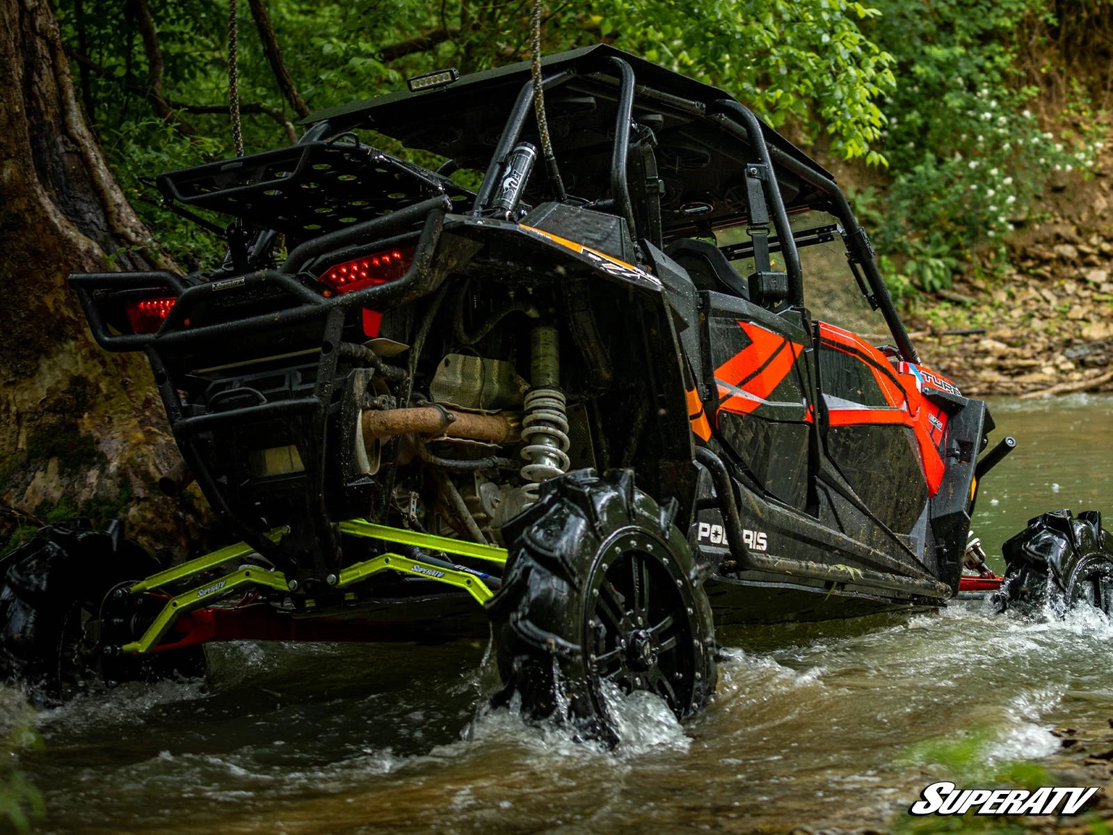 Engineered for all out strength and longevity, SuperATV’s RZR XP Turbo High-Clearance Radius Arms are smarter, stronger, and sleeker than any other radius arms around. How strong? Try 4x stronger than stock, and smartly designed to eliminate sheer points and weak spots. How sleek? These high-clearance boxed arms are one-of-a-kind, and a perfect combination of defined angles and severe strength. You can tell they’re tough just by looking, and they give the guy behind you something to enjoy besides your dust.
