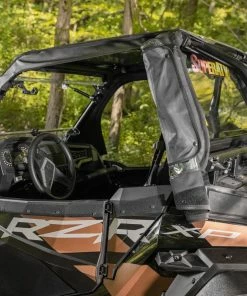 Chilling winds, freezing rain, and onslaughts of mud are no match for SuperATV’s Primal Soft Cab Enclosure Upper Doors. Add them to your Polaris RZR XP Turbo to ride comfortably in all conditions. We make them with premium Pel-Tek technology to be water resistant and strong enough to protect you from Mother Nature’s fury. Don’t need the coverage? Just roll them up when you want some fresh air. They can even be paired with a roof, windshields, and lower doors for a full cab enclosure.