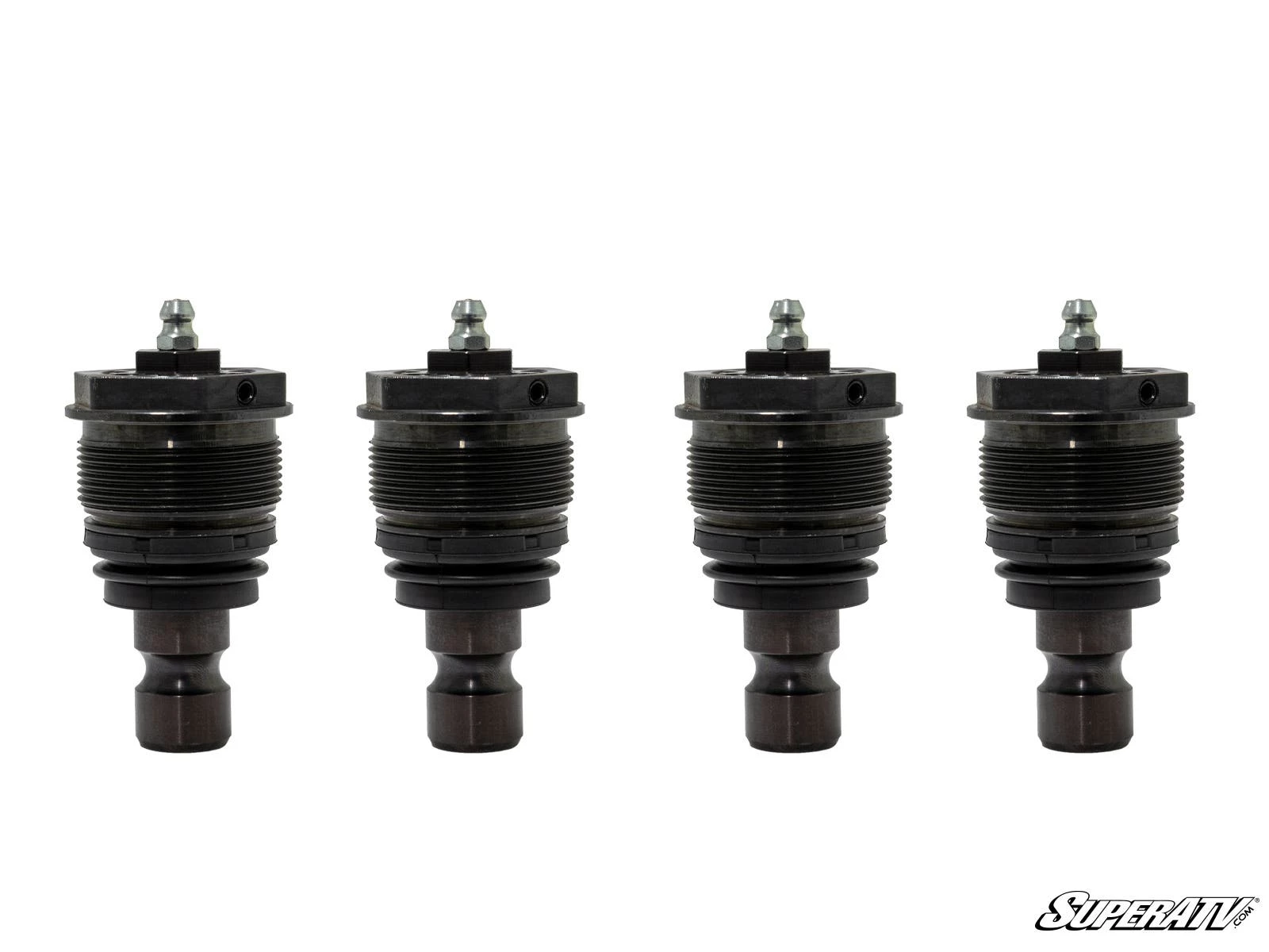 What makes SuperATV’s Threaded Ball Joints so strong? We use heavy-duty 4340 chromoly steel and a stud design that doesn’t taper down like stock. What makes them truly unique, and stronger than other ball joints, is the M38 threads around the housing that lets you thread it easily into our threaded A-arms and secure it with threadlocker and a snap ring. They’re almost 3x stronger than stock and easy to install. They come fully assembled and greased so all you have to do is thread them on, torque them to spec, and install the snap ring. Easy. That means you spend less time in the garage, and more time pushing your machine harder than you thought possible.