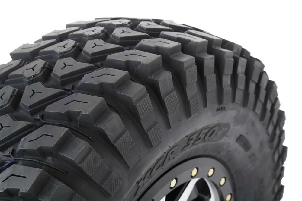 The XCR350 is a X-Country Radial designed to dominate in tough and technical terrain. With four available sizes, from 28-inch on 14-in wheels up to 36-in tires for 18-inch wheels, there is an XCR350 for every UTV driver demanding top performance. This tire was developed with a medium compound that provides unmatched flex and grab on any terrain you can throw at it and will blow you away with how smooth it rides!